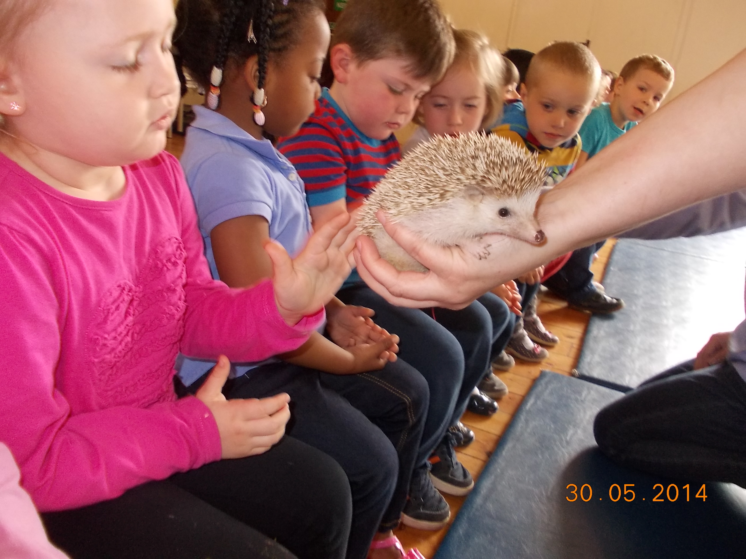 Wiggly Wild show Posted on 29 April 2014 by julieplaywell Today we had a visit from Cairis from the Wiggly Wild Show. She brought in some very different creatures for us to see and touch. We saw a snake, a hermit crab, millipede, a hedgehog and many others.
